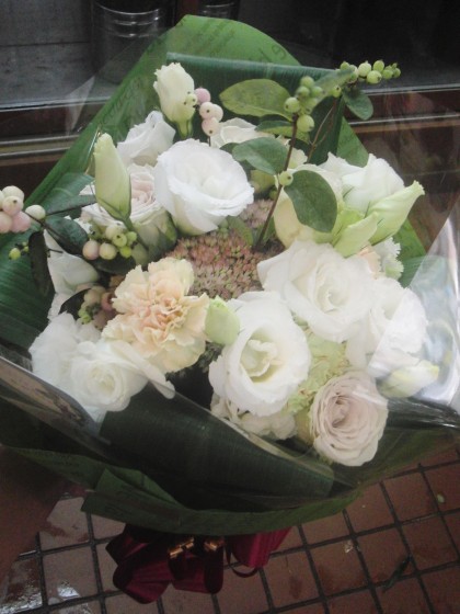 Home > 未分類 > 白・ベージュ系のブーケ風花束