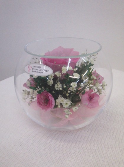 | 廃盤になりました。バラの色など中身が変わってもよければ、若干在庫がございます。 ピンクの大輪バラのまわりにかすみそうとスプレーバラをあしらえてアレンジしてあります。 プリザーブドフラワーは2,3年ですが、こちらのお花は直射日光に当てなければ、生花の色のまま10年くらいは長持ちします。 【全国発送可能】 |