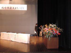 今日は岡崎市図書館交流プラザ りぶらホールにて開催された『歴史まちづくりシンポジウム』の会場へお花の生け込みに出張しました。